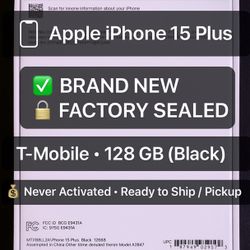 🔥 Brand New Sealed Apple iPhone 15 Plus 128 GB Black (T-Mobile) – Factory Sealed / Never Activated$675Fort Myers, FL