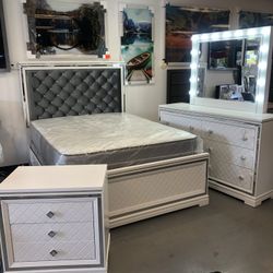New White Bedroom 4pc Set Queen Bed,dresser,Hollywood Mirror,nightstand We Finance $39 Initial Payment $39Lehigh Acres, FL