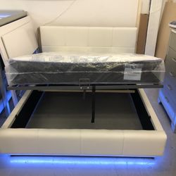 New LED Queen PU Bed Set 4pc With Storage We Finance $54 Initial Payment $1,699Lehigh Acres, FL