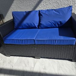 New Wicker Loveseat with Blue Cushions and Ottoman $250Cape Coral, FL