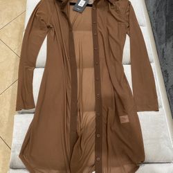 DKNY Khaki Muslin A-Line Ruffle Raincoat Jacket Trench Button Up Sz S$27Fort Myers, FL