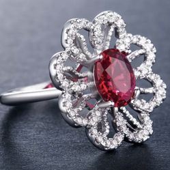 Red Flower Silver Flower Ring Size 6$15Cape Coral, FL