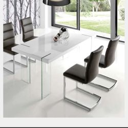 New White Glass Table Top /glossy And Chrome Legs 32x55x30”H Table And 4 Chairs Set $1,350Lehigh Acres, FL