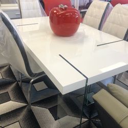 New High Gloss Table Top / Glass Legs .table And Chairs Available For Same Day Deliver .we Finance Initial Payment $39$39Lehigh Acres, FL