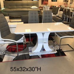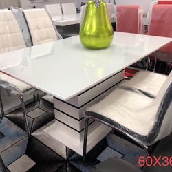 New White Glass Top /glossy Base Table With Chairs Visit Us 5513 8th Street W Suite 10 Lehigh Same Day Deliver We Finance initial Payment $39$39Lehigh Acres, FL