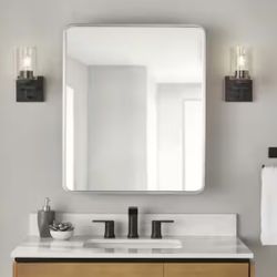 New-24 in. W x 30 in. H Rounded Corner Rectangular Brushed Nickel Medicine Cabinet with Mirror$185Land O' Lakes, FL