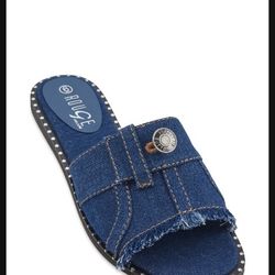 Trendy Denim Button Slide Sandals$35Wesley Chapel, FL