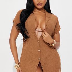 Summer Breeze Button Up Plisse Cover Up Shirt Dress- Mocha$15Tampa, FL