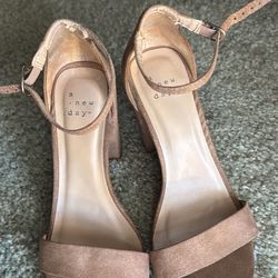 Beige open-toe heels with ankle strap #suedeheels$3Tampa, FL
