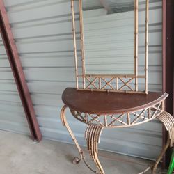 Decorative Metal And Wood Bamboo Design Half Round Hall Table With Matching Beveled Edge Wall Mirror$150Dunedin, FL