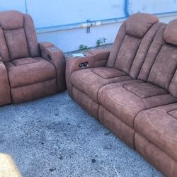 Brown Electric Recliner Sofa And Loveseat Set With Cupholders And Storage Compartments $899Tampa, FL