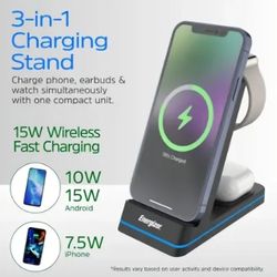 3-in-1 Energizer 15W Qi Certified Wireless Fast 15W Charger Charging Station/Stand w/ RGB Light for iPhone + AirPods + Apple Watch - Black$20North Lauderdale, FL