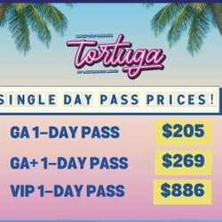 Tortuga 3 Day GA $400 Each$400Fort Lauderdale, FL