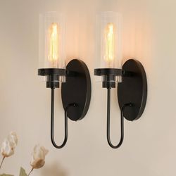 2 Wall Sconces HARDWIRED Black Light Fixtures Bathroom Living Room $65Hollywood, FL
