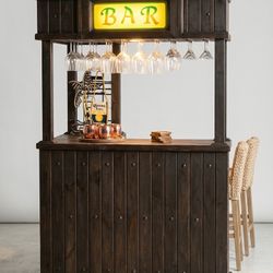 Rustic Dark Wood Home Bar - With Built-in Glass Rack & Lighted Sign$375Wellington, FL