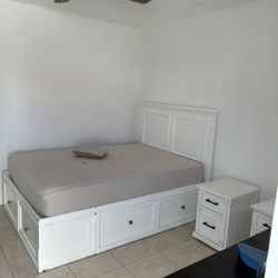 Queen Platform Bed With New Mattress And Two Nightstands Solid Wood $200North Lauderdale, FL
