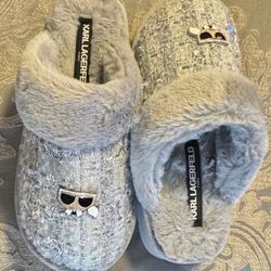 Karl Lagerfeld grey fuzzy slippers Size 6$50Fort Lauderdale, FL