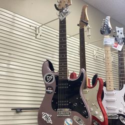 Fender electric guitar and Squier Strat Fender and speaker/amplifier and a bag with accessories.$280Delray Beach, FL