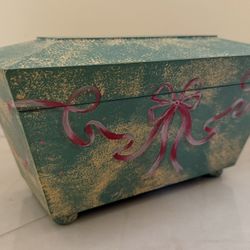 Hand-Painted Decorative Wooden Keepsake Box - Green & Gold with Bow Design$60Boca Raton, FL