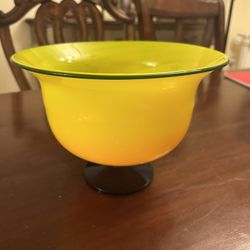 BLENKO Opaline Yellow And Blue Pedestal Bowl$0Miami, FL