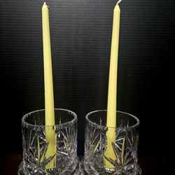 Vintage Cut Crystal Taper Candleholders set of Two with Hurricane Shade Made In Poland$59Boca Raton, FL