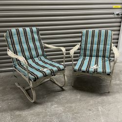 Vintage pair of aluminum patio chairs located near the Miami Design District. One chair is a lounge chair. The other is a stationary rocking chair. $249Miami, FL