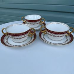 Limoges France Porcelain Tea Cups Set of 3 Gold Trim Burgundy$30Oakland Park, FL