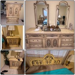 Vintage Stanley Bedroom Set – 1970s Solid Wood, Ornate Carvings (Item #951-81)$1,100Miami, FL