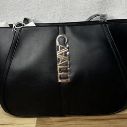 Cavalli Class Sandra Shopper Tote Bag Black Debossed Designer Handbag NWT$40Lake Worth, FL