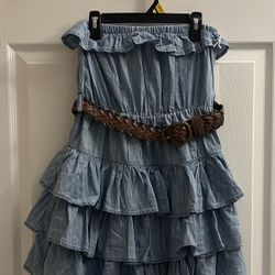 Brand New Blue Pinstripe Ruffle Short Dress With Brown Belt Size S Juniors $6West Palm Beach, FL