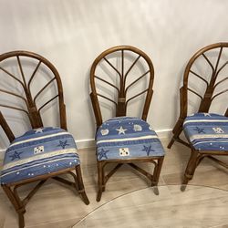 Set of 3 Rattan Dining Chairs with Blue Beach Seashell Cushions$35Boca Raton, FL