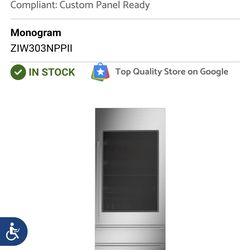 2025 MONOGRAM 30 INCH PANEL READI WINE REFRIGERATOR DUAL ZONE 106 BOTTLE CAPACITY$2,550Hialeah Gardens, FL