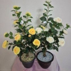 *** NEW LOW PRICE *** 3ft Faux Yellow & White Camellia Trees Topped with Citrine / Clear Stones in 9in Resin Planters @ Lasting Creations$40Oakland Park, FL