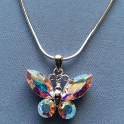 AB Crystal Butterfly Necklace on Snake Chain - Radiates The Colors Of The Rainbow * Pickup Boca Raton$20Boca Raton, FL