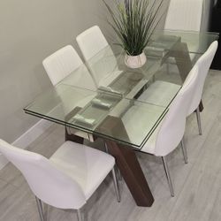 Modern Glass Dining Set with 4 White Chairs + 2 Decorative Mirrors – Excellent Condition $150Halndle Bch, FL