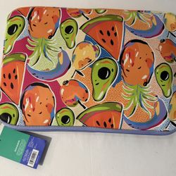 faux leather and features a colorful fruit print. The sleeve is designed to hold laptops or tablets up to 15 inches, along with cables and chargers. T$15Miami, FL