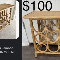 $100 Vintage Woven Rattan Bamboo Side Table Wine Rack $100Boca Raton, FL