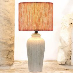 Large Ribbed Ceramic Table Lamp, Beige With Multi-Red - Bohemia Style Fabric Lampshade. 26”$33Palm Shores, FL