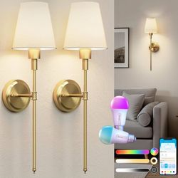Set Of 2 Gold Wall Sconces , Hardwired Wall Lights With White Fabric Shade And Smart LED RGBWW Color-Changing Light Bulbs$38Palm Shores, FL