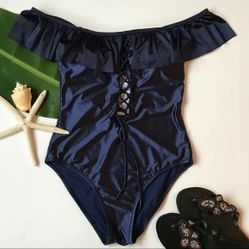 one piece off shoulder ruffled polka dot swimsuit$26GRANT VLKRIA, FL