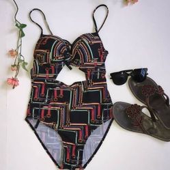 Art print one piece black swimsuit bathingsuit size M$23GRANT VLKRIA, FL