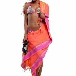 Orange Sarong Beach Wrap cotton African kikoy$18GRANT VLKRIA, FL