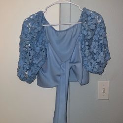 Cute Tie Front Top with Crotchet Sleeves blue Size M. $5$5Palm Bay, FL