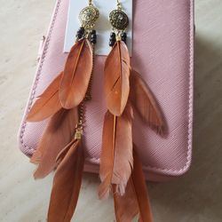 Long Feather With Gold Tassels Earrings And Crystal..long And Beautiful $17Cocoa, FL
