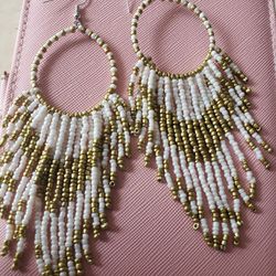 Bohemian Long Bead Earrings Gold And White$22Cocoa, FL