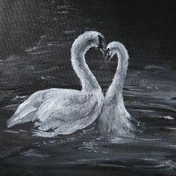 Original Acrylic Painting Swans in Water 8x10 Black White Wildlife Art Canvas$70Grant Vlkria, FL