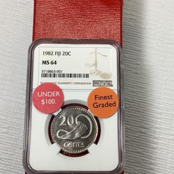 1982 Fiji 20 Cents issue Finest Known~Finest ever graded Top of population NGC gradedVery choice uncirculated MS-64:~(IVID#1416//OFRUP)$60Melbourne, FL