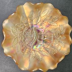 Peacock & Urn Marigold Orange Carnival Glass Ruffled Bowl $50Merritt Island, FL