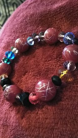 Red Crackled Glass and Crystal Quartz Beaded Bracelet$9Palm Bay, FL