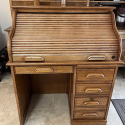 Antique Farmhouse All Wood Five Drawer Desk With Open Shelving$125Ind Hbr Bch, FL